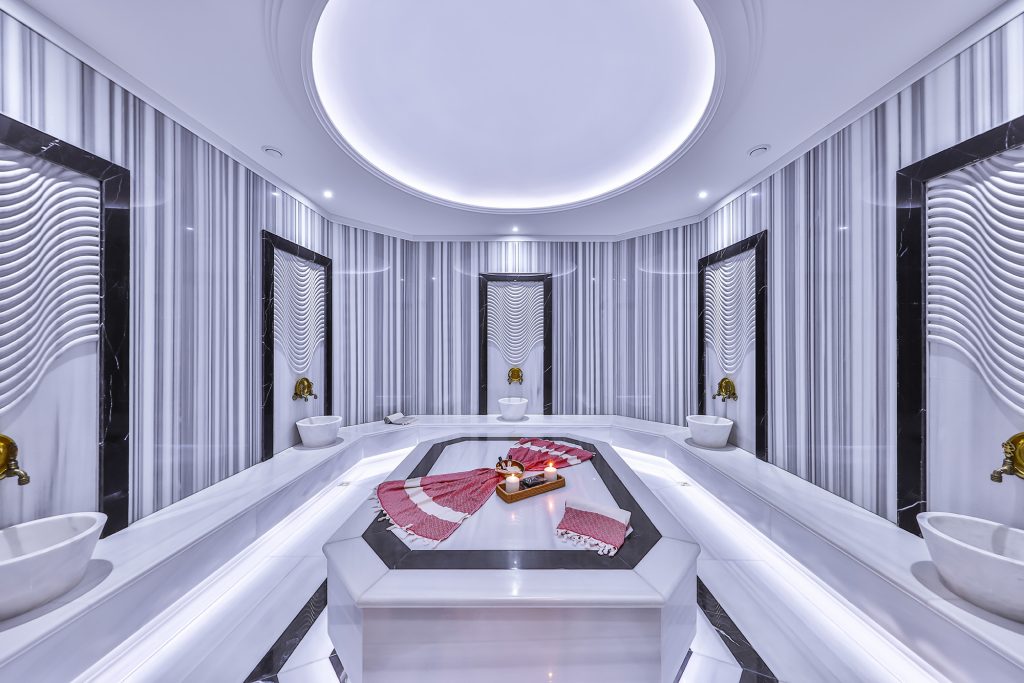 Aile Bakım Odaları – 6 adet; Sauna, hamam, jakuzi ve oturma alanı gibi olanaklar mevcut. Ayrıca, 3 adet aile bakım odasında masaj yatağı da bulunuyor.